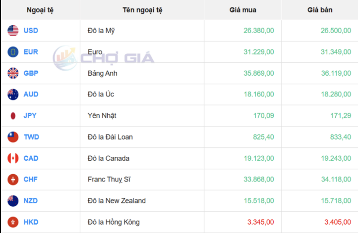 Cụ thể, tại Ngân hàng Vietcombank, tỷ giá USD hiện ở mức 25.870 - 26.260 đồng/USD, giảm 70 đồng ở cả chiều mua và chiều bán so với phiên giao dịch trước đó.