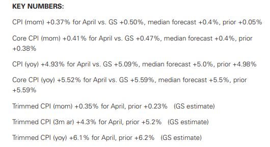Core-CPI tháng 4 tăng 0,41% (mom sa), cao hơn 1 điểm cơ bản so với mức đồng thuận và thấp hơn 1 điểm cơ bản so với mức trung bình ba tháng trước đó là 0,42%