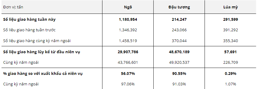 “Trong báo cáo lần này, giao hàng ngô giảm nhẹ so với tuần trước sẽ gây áp lực lên giá, đặc biệt là trong bối cảnh tỷ lệ giao hàng mới chỉ đạt 56% kế hoạch, thấp hơn nhiều so với mức 97% trong cùng kì niên vụ trước. Số liệu đậu tương cũng sụt giảm nhưng tỷ lệ giao hàng so với kế hoạch vẫn đang tương đương so với năm ngoái nên sẽ không tác động quá lớn. Đối với lúa mì, báo cáo này sẽ không có nhiều ảnh hưởng do mới chỉ là tuần đầu của niên vụ mới.”