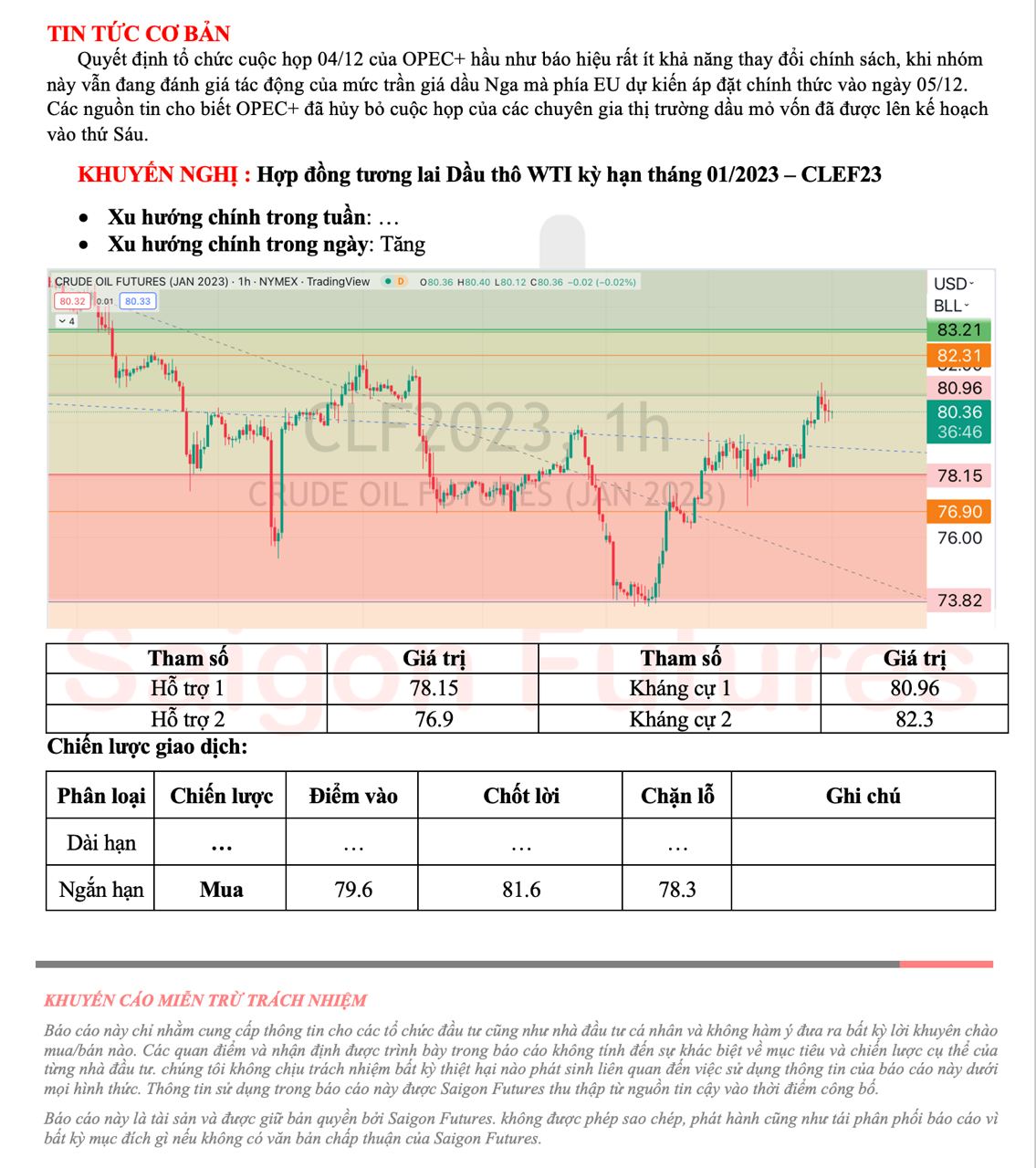 -View kỹ thuật dầu thô WTI kỳ hạn tháng 01/2022 (CLEF23) đầu ngày 01/12/2022