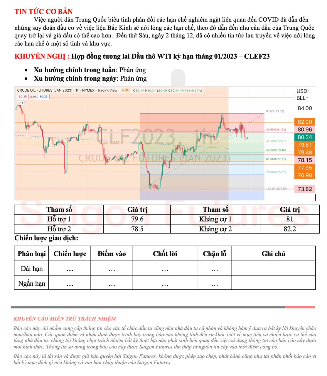 -View kỹ thuật dầu thô WTI kỳ hạn tháng 01/2022 (CLEF23) đầu ngày 05/12/2022
