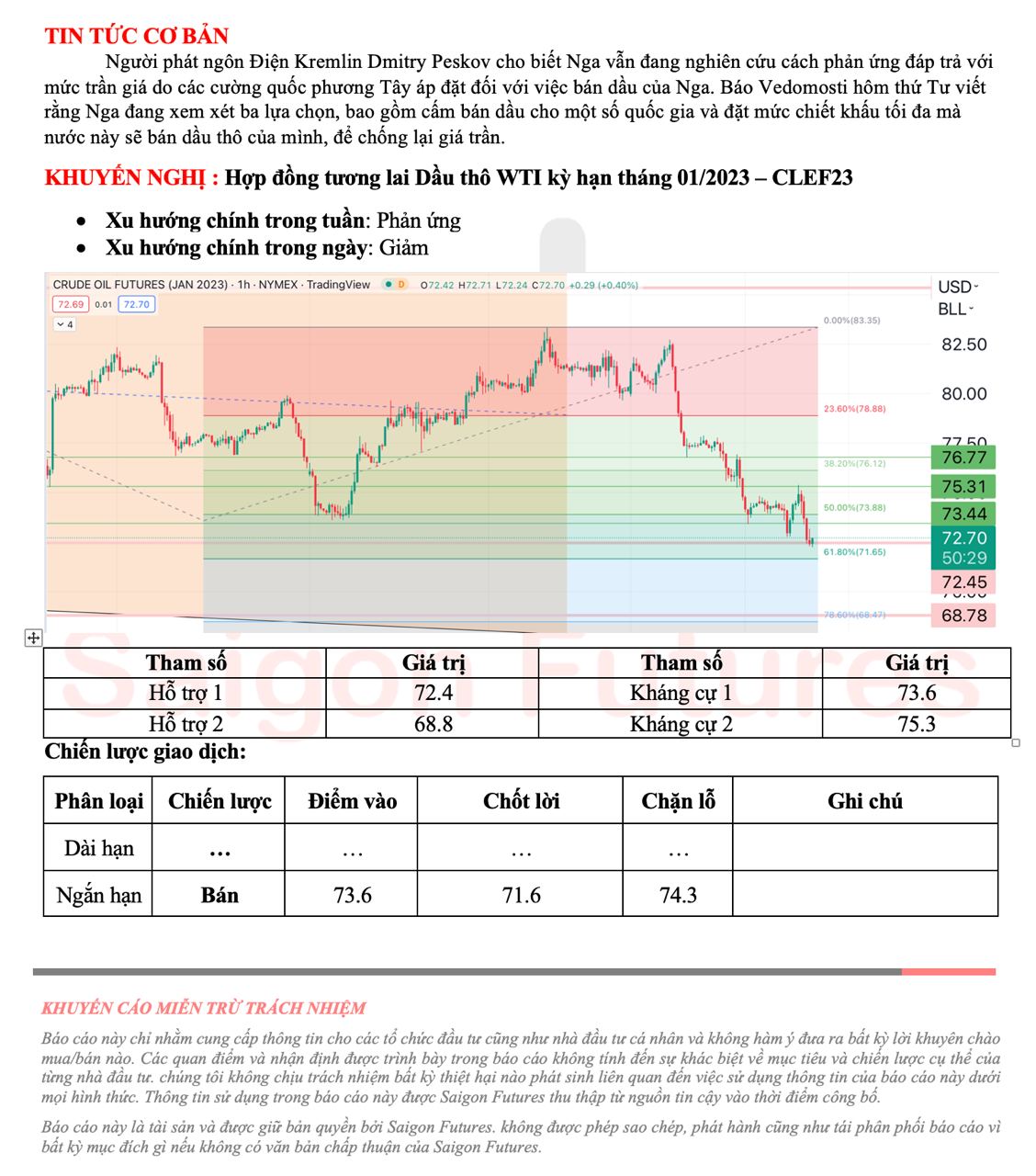 -View kỹ thuật dầu thô WTI kỳ hạn tháng 01/2022 (CLEF23) đầu ngày 08/12/2022
