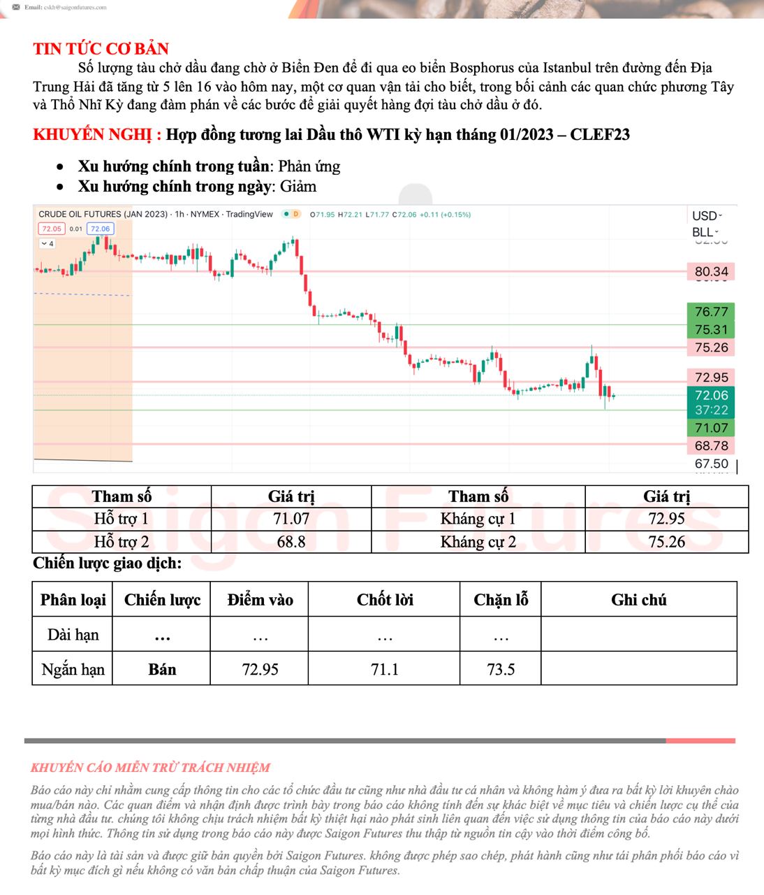 -View kỹ thuật dầu thô WTI kỳ hạn tháng 01/2022 (CLEF23) đầu ngày 09/12/2022