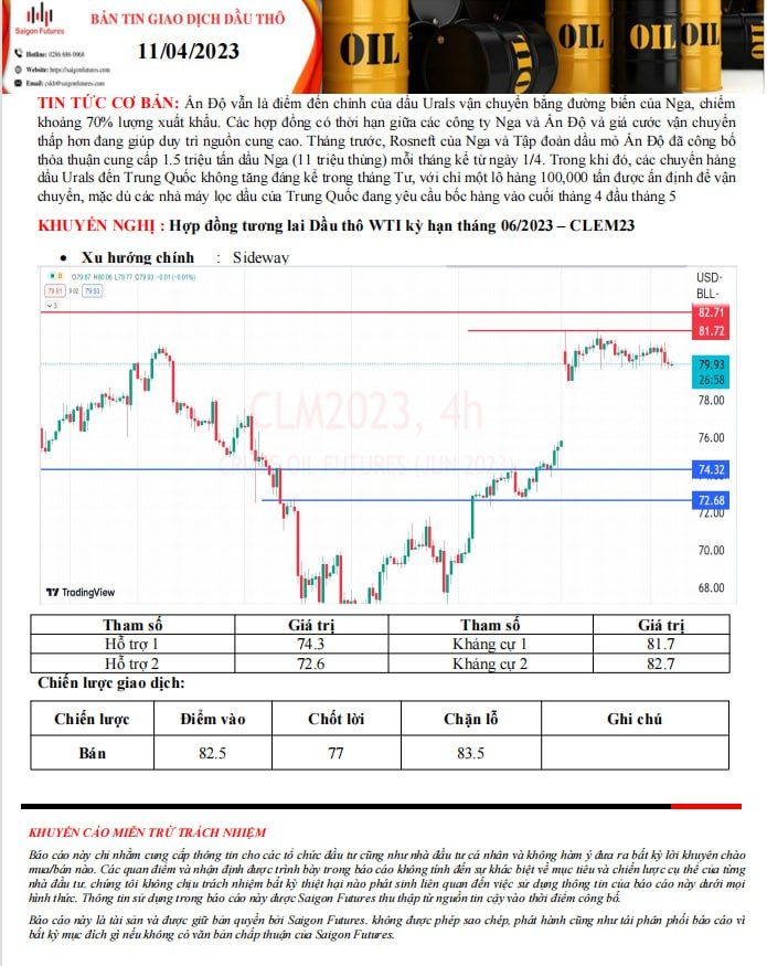 -View kỹ thuật dầu thô WTI kỳ hạn tháng 04/2022 (CLEK23) đầu ngày 11/04/2023