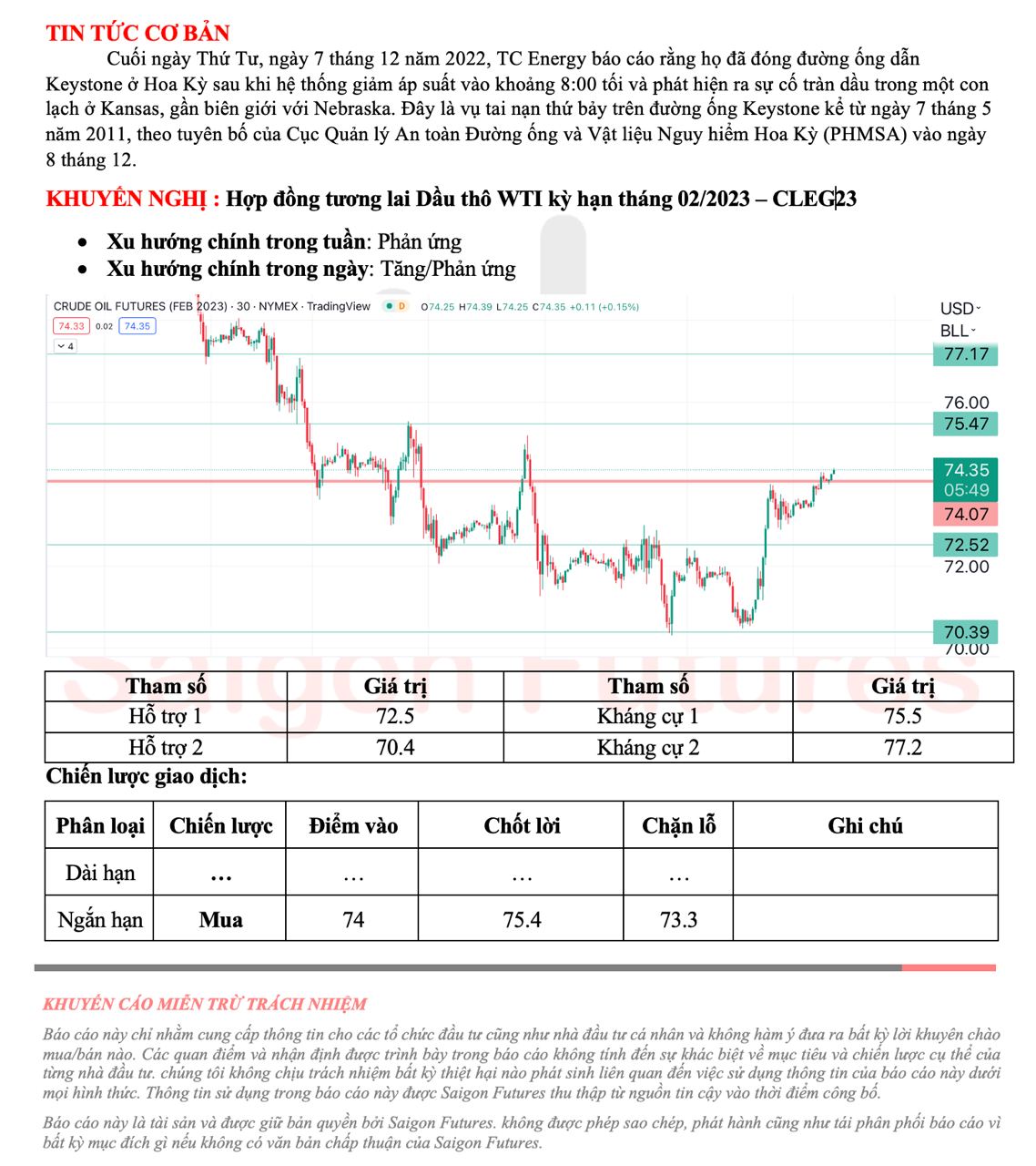 -View kỹ thuật dầu thô WTI kỳ hạn tháng 02/2022 (CLEG23) đầu ngày 13/12/2022