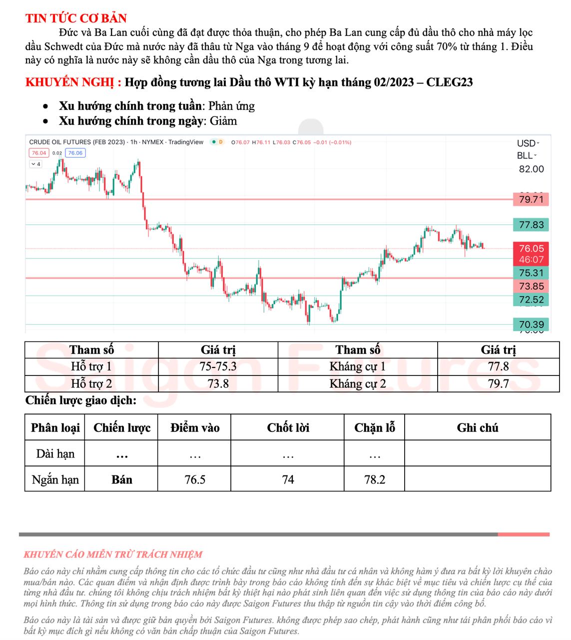 -View kỹ thuật dầu thô WTI kỳ hạn tháng 02/2022 (CLEG23) đầu ngày 16/12/2022