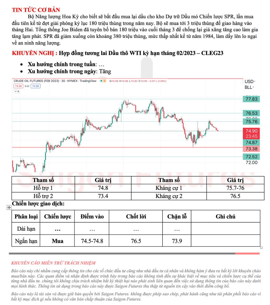 -View kỹ thuật dầu thô WTI kỳ hạn tháng 02/2022 (CLEG23) đầu ngày 19/12/2022