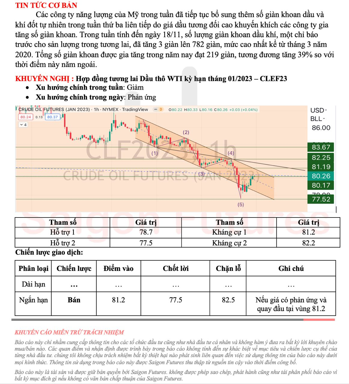 Saigonfutures gửi quý nhà đầu tư view kỹ thuật dầu thô WTI kỳ hạn tháng 01/2022 (CLEF23) đầu ngày 21/11/2022.