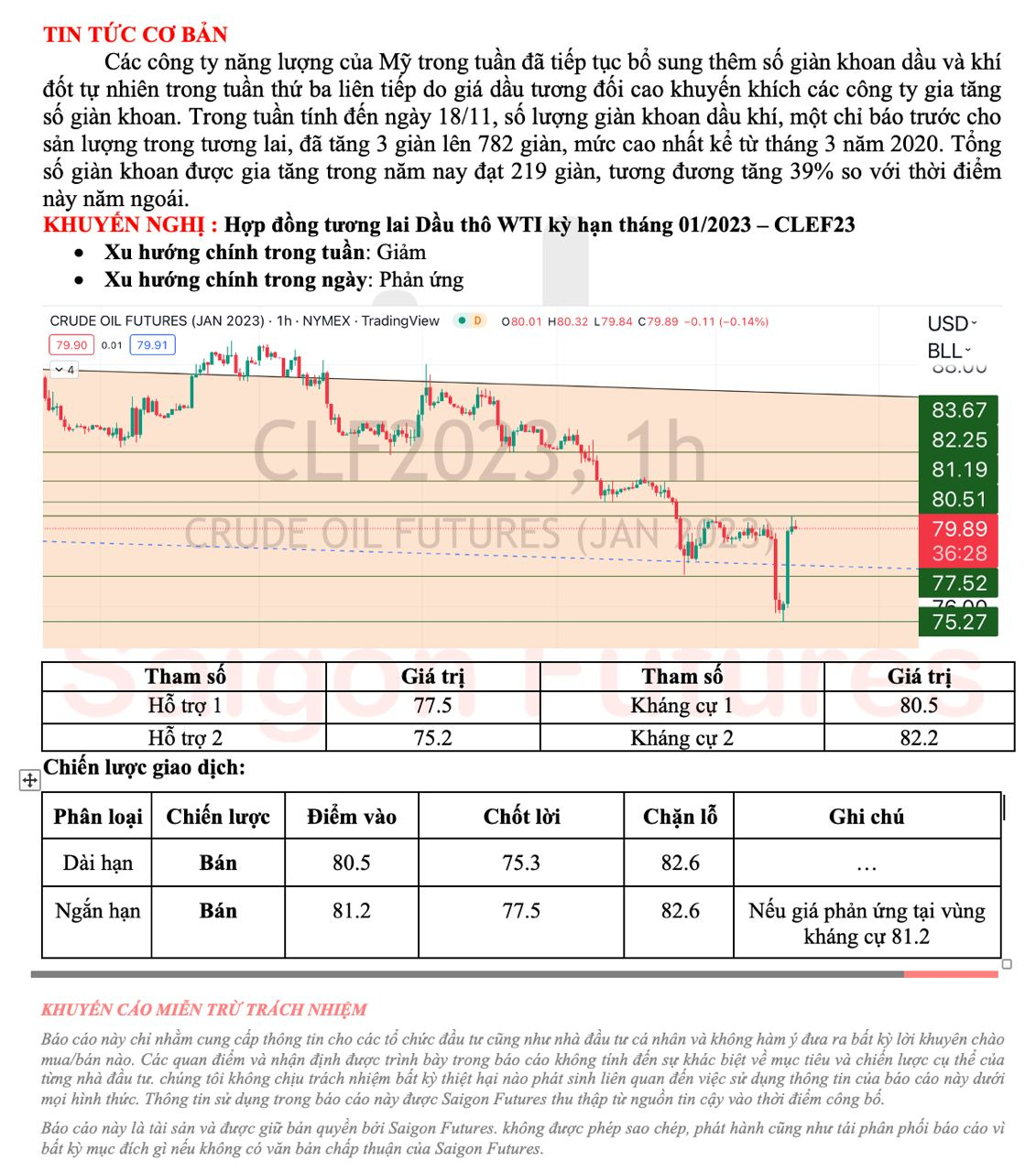 View kỹ thuật dầu thô WTI kỳ hạn tháng 01/2022 (CLEF23) đầu ngày 22/11/2022