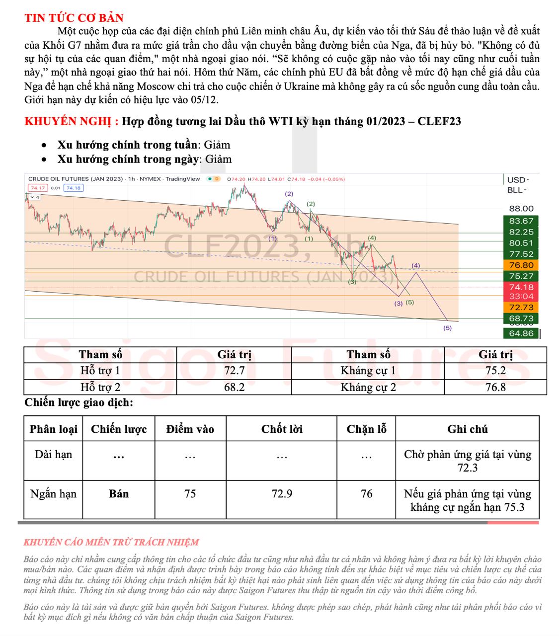 -View kỹ thuật dầu thô WTI kỳ hạn tháng 01/2022 (CLEF23) đầu ngày 28/11/2022