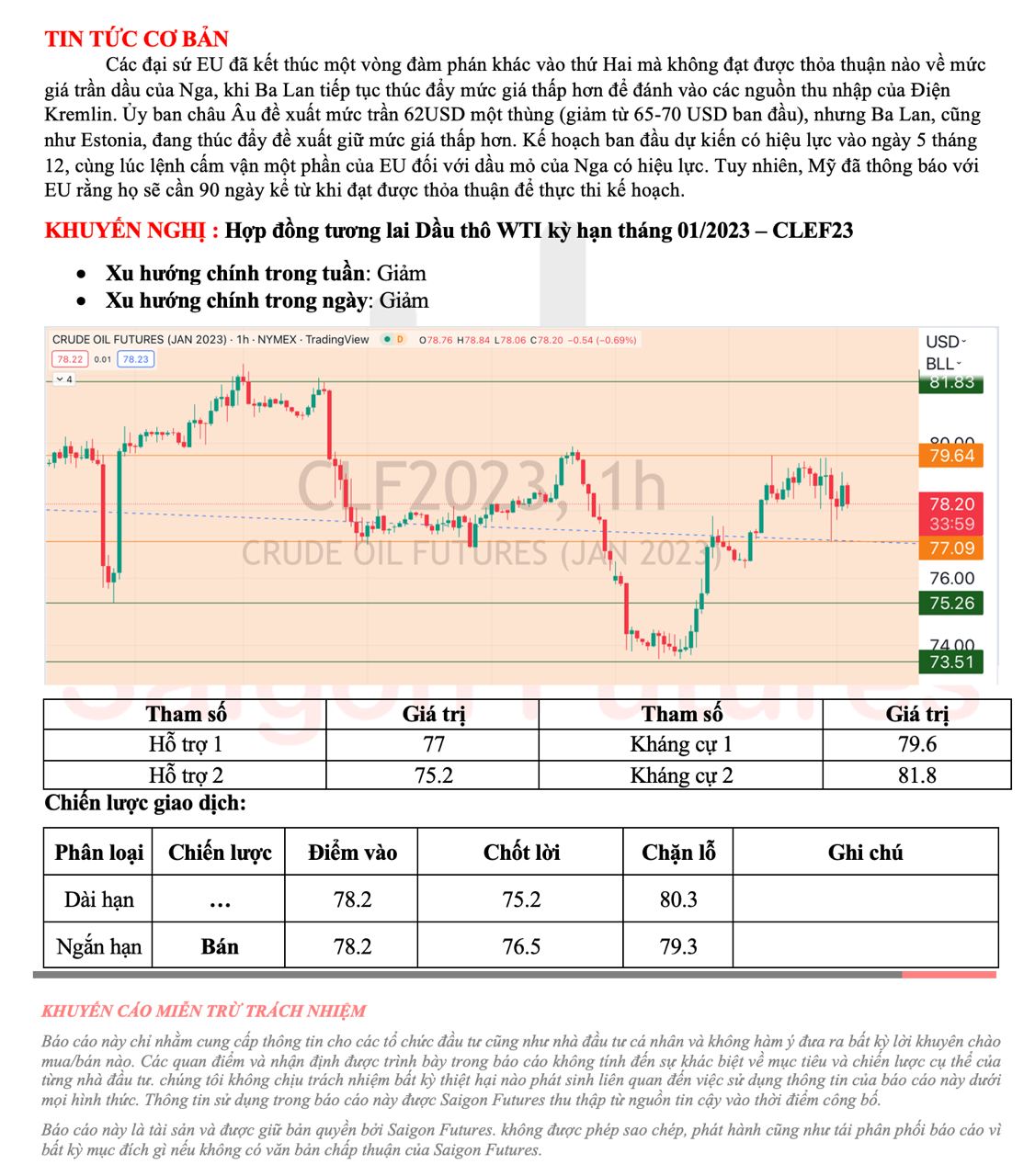-View kỹ thuật dầu thô WTI kỳ hạn tháng 01/2022 (CLEF23) đầu ngày 30/11/2022
