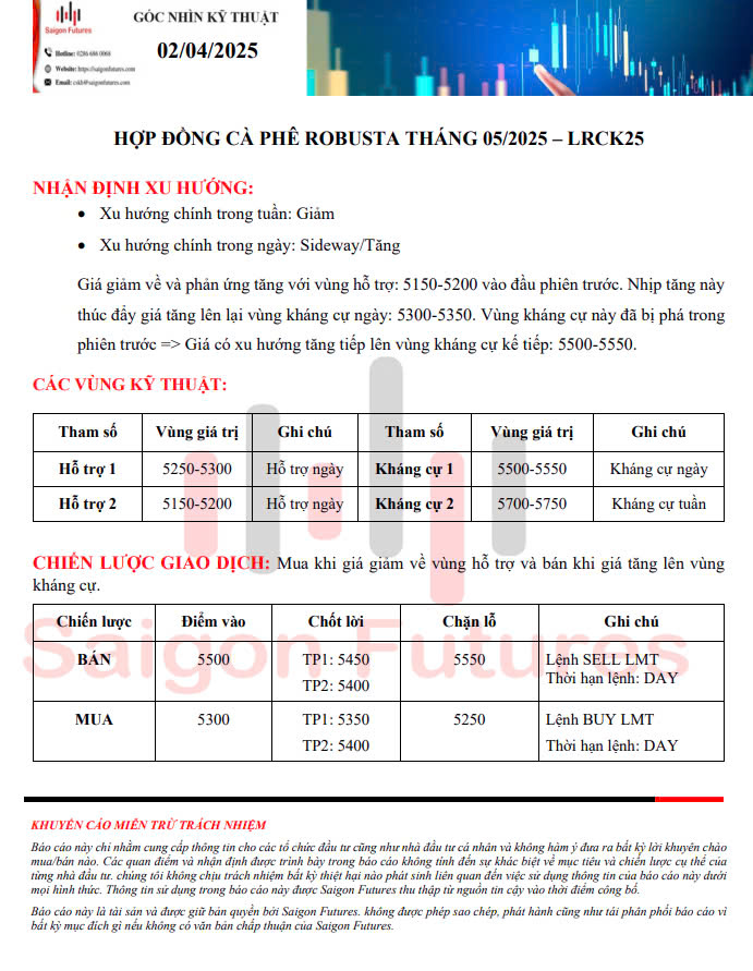 - Cà phê Robusta kỳ hạn tháng 05/2024 (LRCK25)
