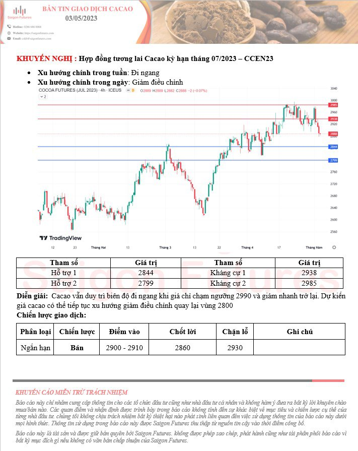 -View kỹ thuật Cacao kỳ hạn tháng 07/2023 (CCEN23) đầu ngày 03/05/2023