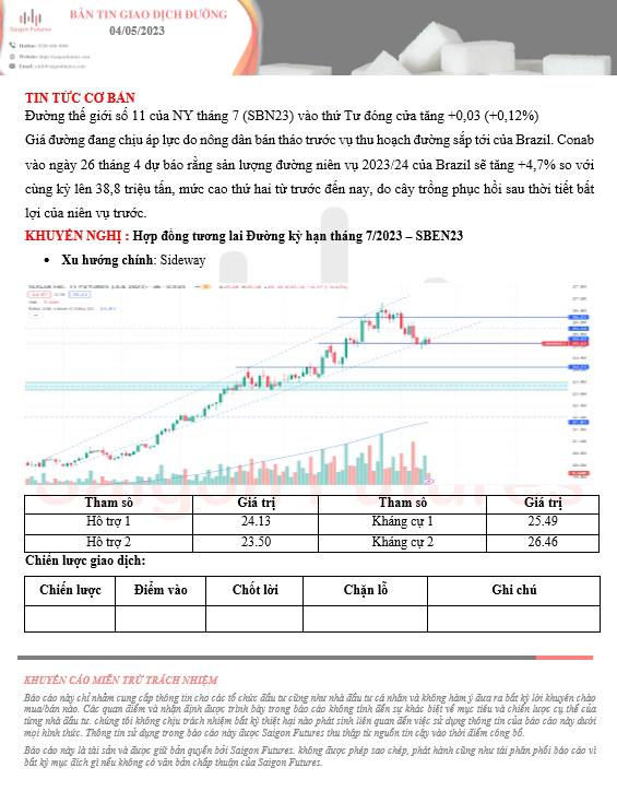 -View kỹ thuật Đường #11 kỳ hạn tháng 7/2023 (SBEN23) ngày 04/05/2023