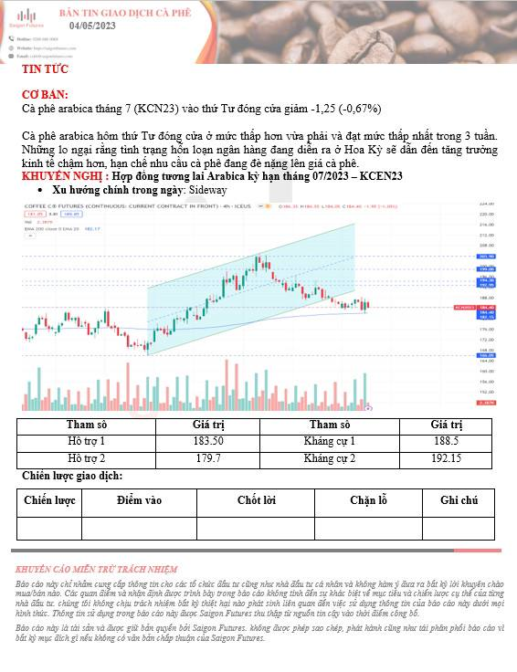 -View kỹ thuật CAFE Arabica kỳ hạn tháng 07/2023 (KCEN23) ngày 04/05/2023