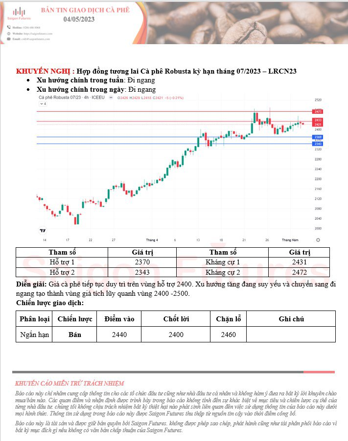 -View kỹ thuật Robusta kỳ hạn tháng 07/2023 (LRCN23) ngày 04/05/2023