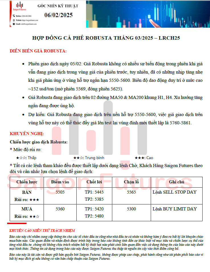 - Cà phê Robusta kỳ hạn tháng 03/2024 (LRCH25)