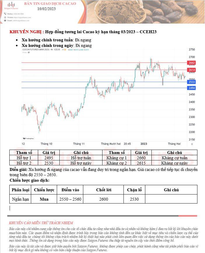 --View kỹ thuật Cacao kỳ hạn tháng 03/2023 (CCEH23) đầu ngày 10/02/2023