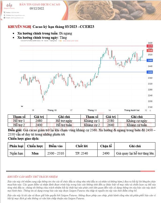 -View kỹ thuật Cacao kỳ hạn tháng 03/2023 (CCEH23) đầu ngày 09/12/2022
