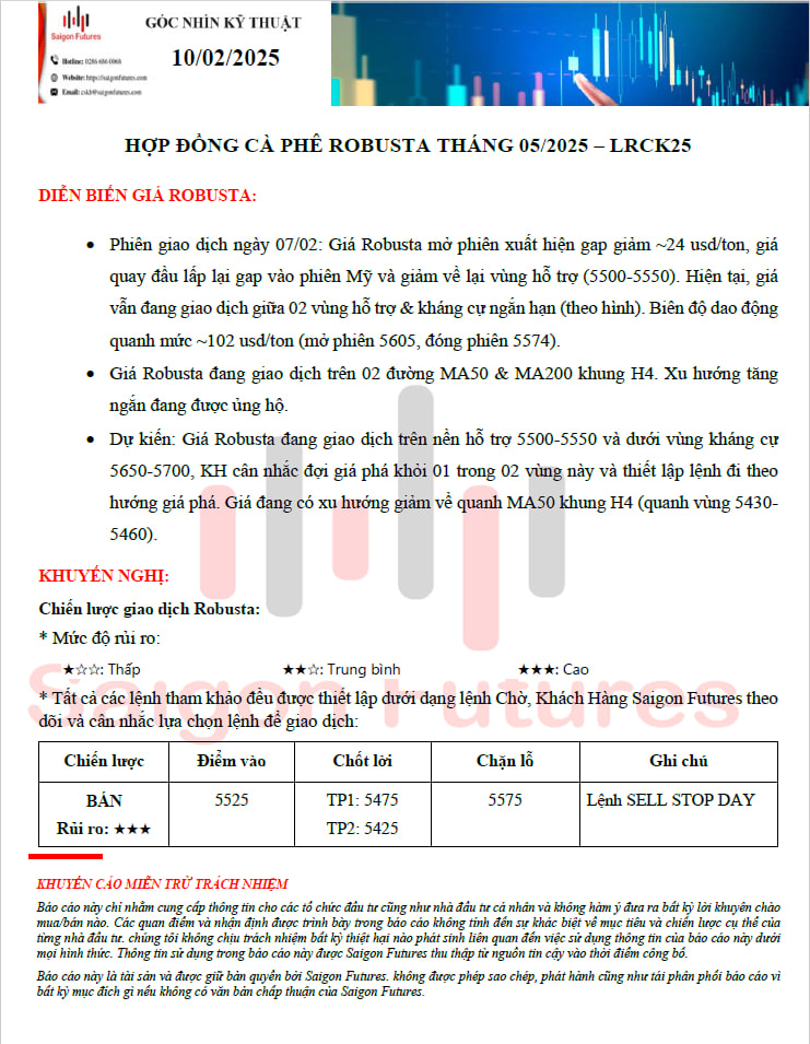 - Cà phê Robusta kỳ hạn tháng 05/2024 (LRCK25)