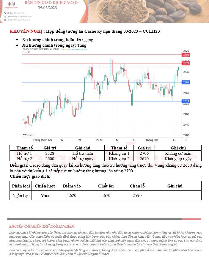 --View kỹ thuật Cacao kỳ hạn tháng 03/2023 (CCEH23) đầu ngày 15/02/2023