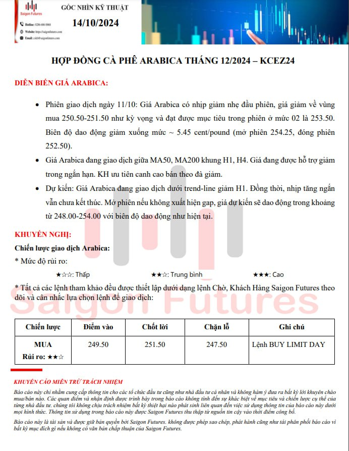 - Cà phê Arabica kỳ hạn tháng 12/2024 (KCEZ24)