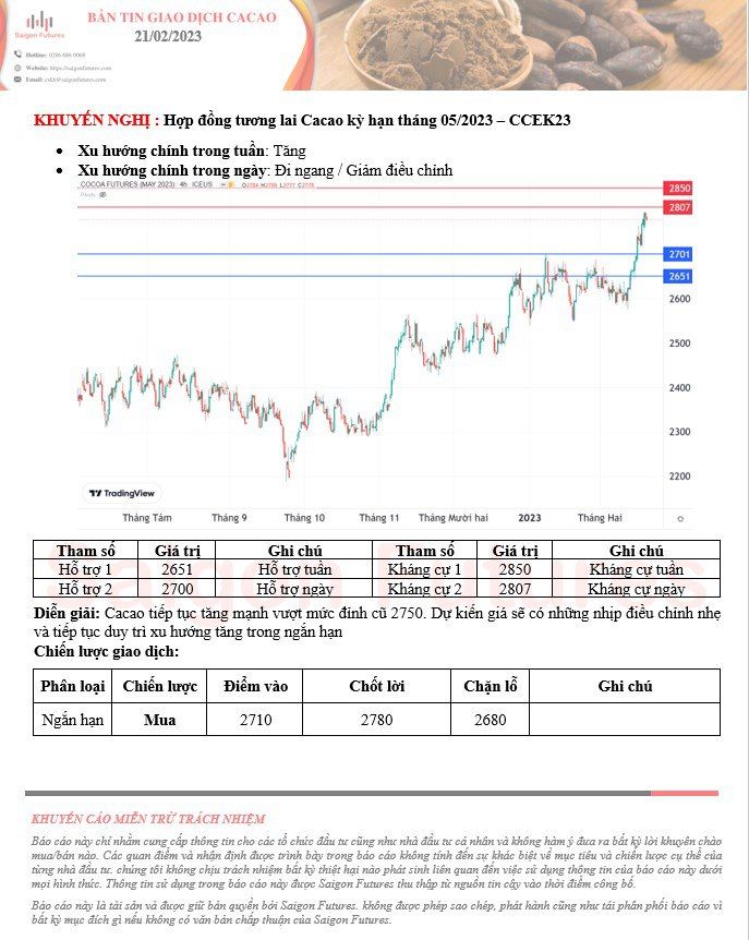 --View kỹ thuật Cacao kỳ hạn tháng 03/2023 (CCEH23) đầu ngày 21/02/2023