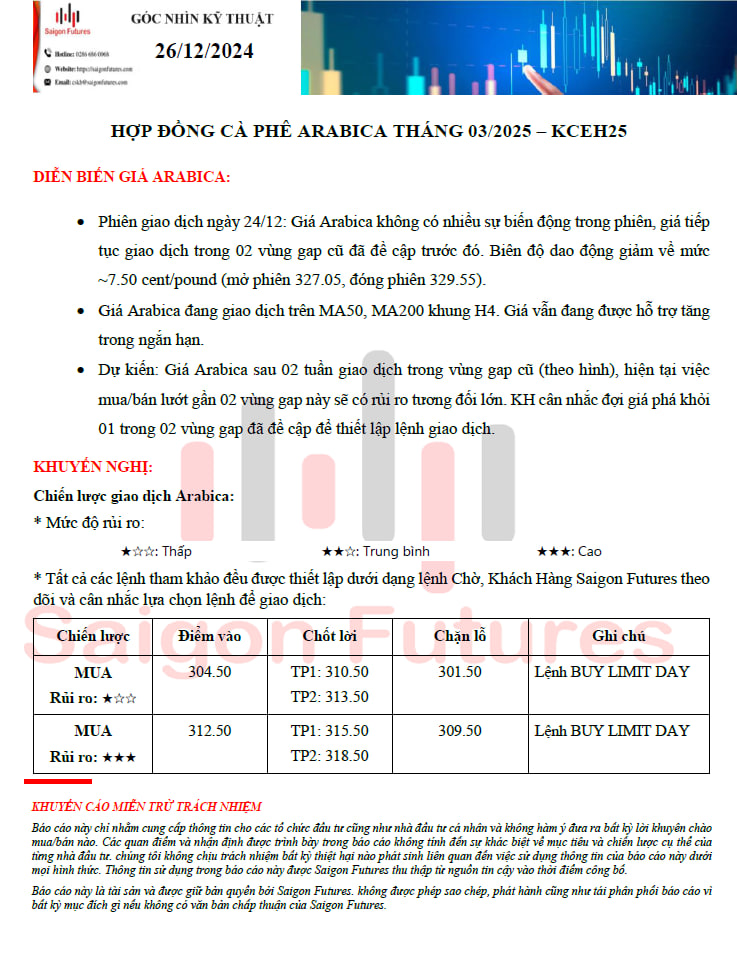 - Cà phê Arabica kỳ hạn tháng 03/2025 (KCEH25)