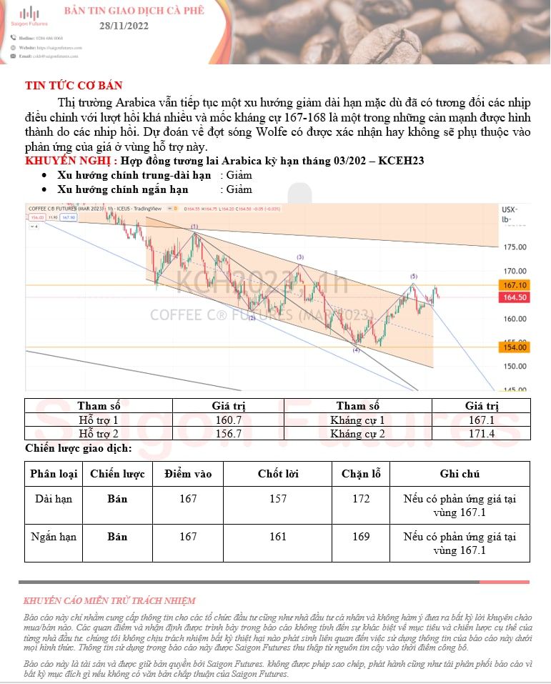 -View kỹ thuật Arabica kỳ hạn tháng 03/2023 (KCEH23) ngày 28/11/2022