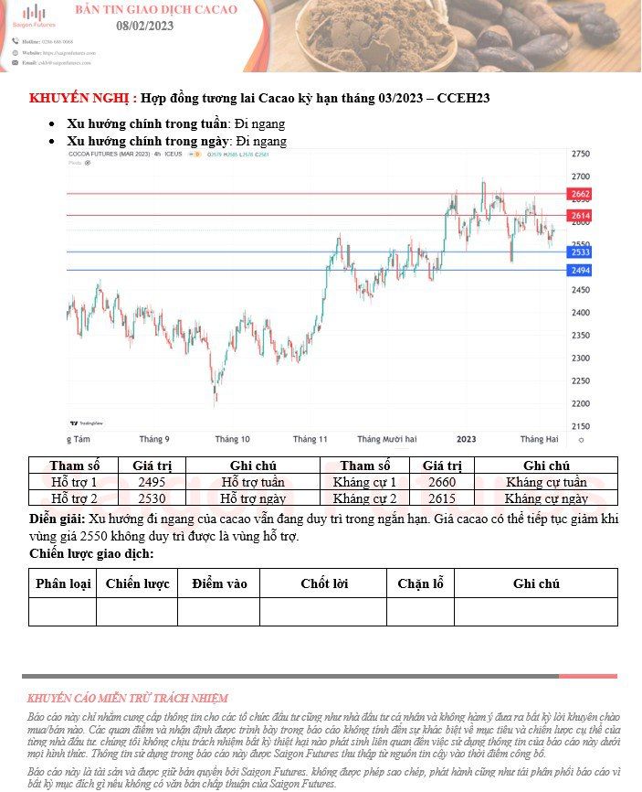 --View kỹ thuật Cacao kỳ hạn tháng 03/2023 (CCEH23) đầu ngày 08/02/2023