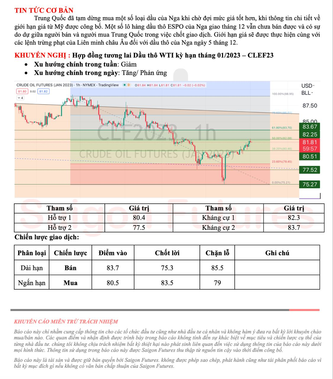 -View kỹ thuật dầu thô WTI kỳ hạn tháng 01/2022 (CLEF23) đầu ngày 23/11/2022