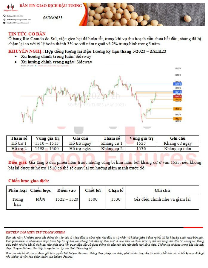 -View kỹ thuật Đậu Tương kỳ hạn tháng 3/2023 (ZSEH23) đầu ngày 06/03/2023