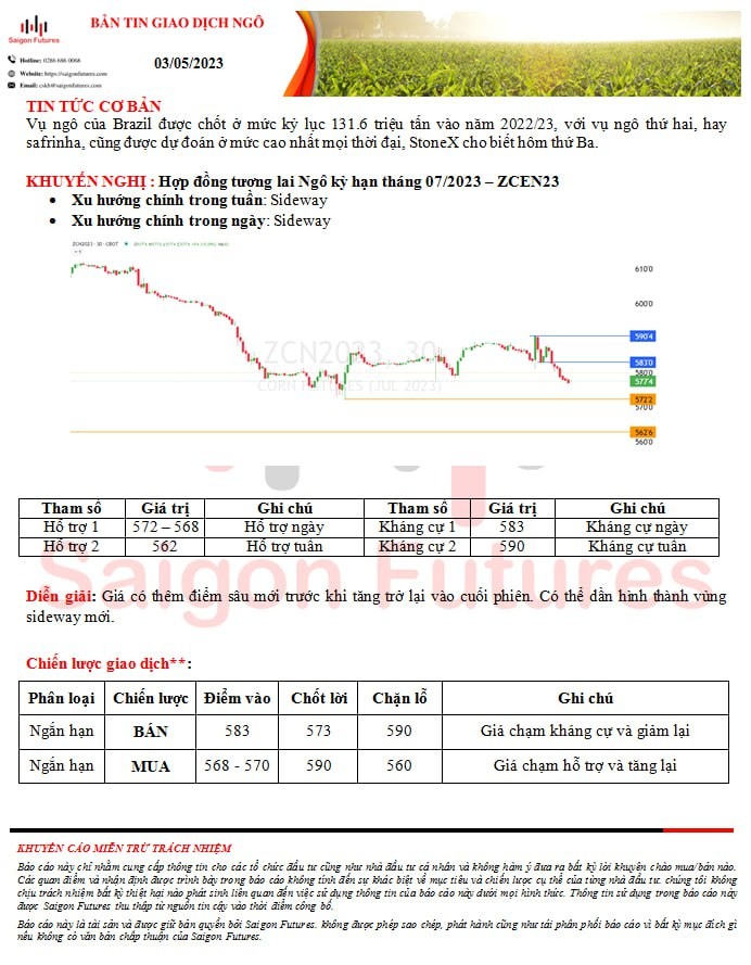 -View kỹ thuật Ngô kỳ hạn tháng 07/2023 (ZCEN23) đầu ngày 03/05/2023
