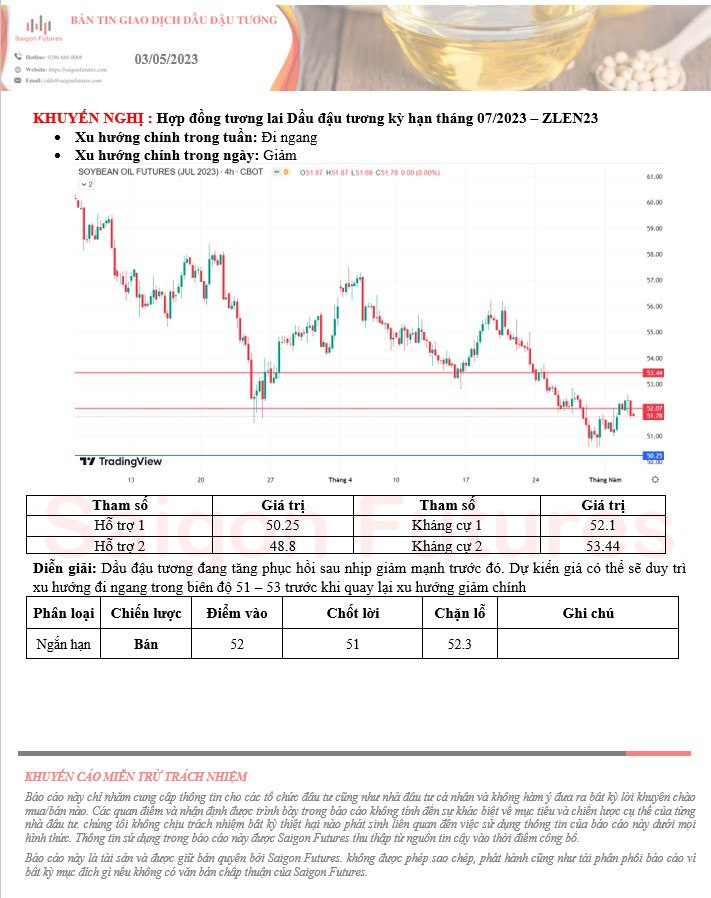 -View kỹ thuật Dầu Đậu Tương kỳ hạn tháng 07/2023 (ZLEN23) đầu ngày 03/05/2023