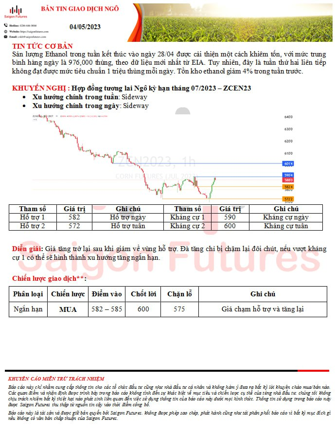 -View kỹ thuật Ngô kỳ hạn tháng 07/2023 (ZCEN23) đầu ngày 04/05/2023