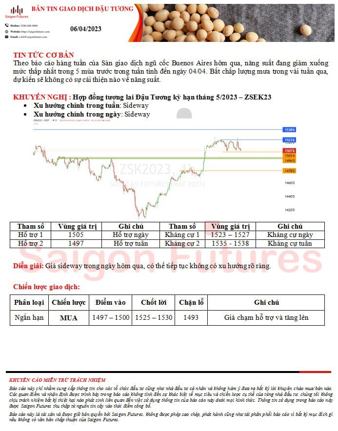 -View kỹ thuật Đậu Tương kỳ hạn tháng 5/2023 (ZSEK23) đầu ngày 06/04/2023