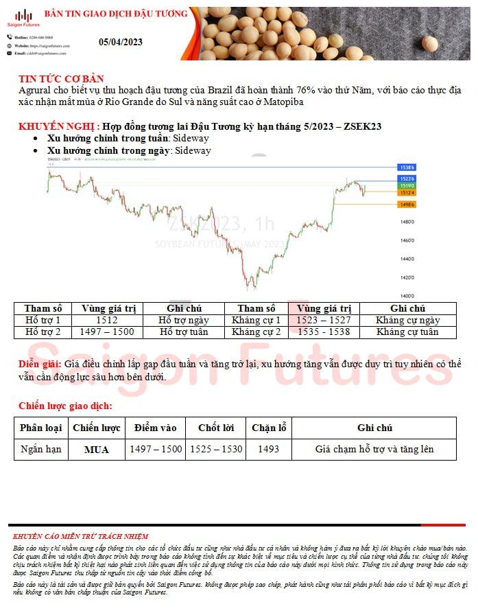 -View kỹ thuật Đậu Tương kỳ hạn tháng 5/2023 (ZSEK23) đầu ngày 05/04/2023