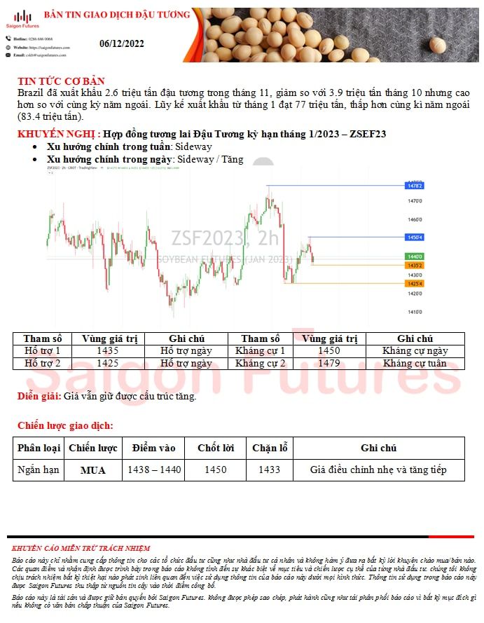 -View kỹ thuật Đậu Tương kỳ hạn tháng 1/2023 (ZSEF23) đầu ngày 6/12/2022