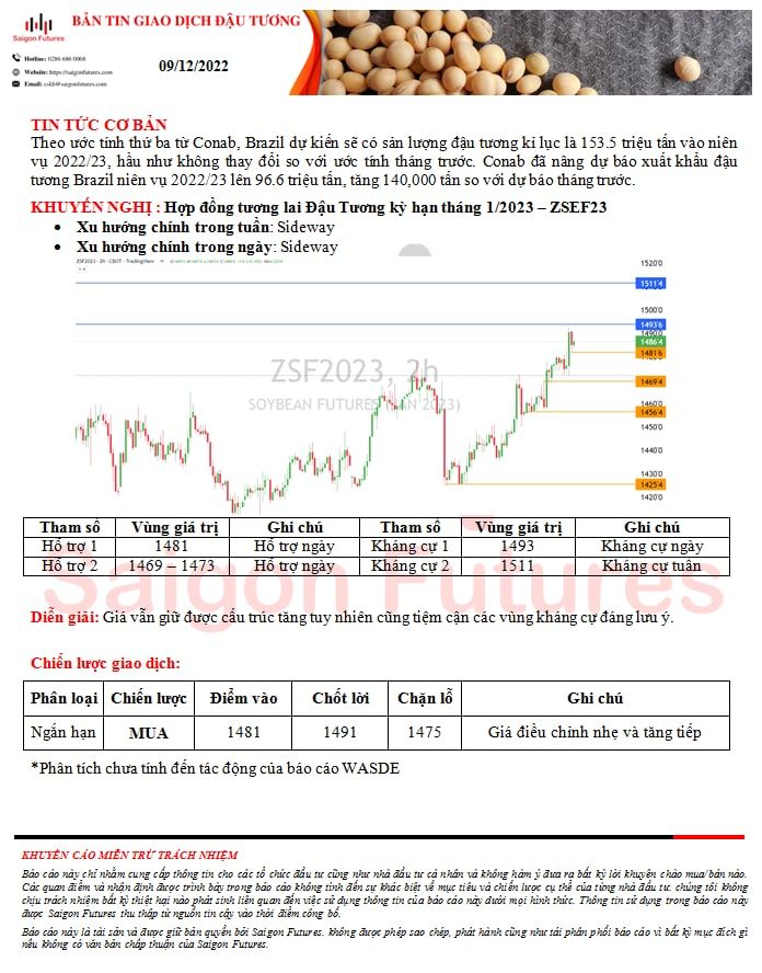 -View kỹ thuật Đậu Tương kỳ hạn tháng 1/2023 (ZSEF23) đầu ngày 9/12/2022