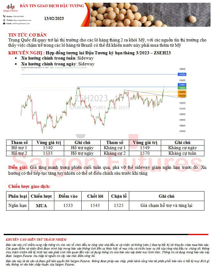 -View kỹ thuật Đậu Tương kỳ hạn tháng 3/2023 (ZSEH23) đầu ngày 13/02/2023