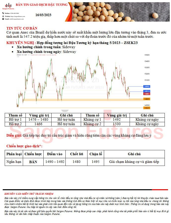 -View kỹ thuật Đậu Tương kỳ hạn tháng 5/2023 (ZSEK23) đầu ngày 16/03/2023