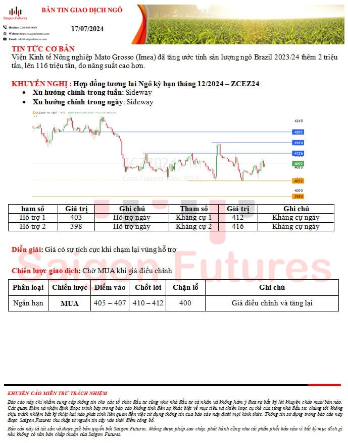 Bài viết tổng hợp Góc nhìn Phân tích Kỹ Thuật và các Ý tưởng giao dịch từ Saigon Futures đối với Nhóm Sản phẩm Nông sản (CBOT) gồm: