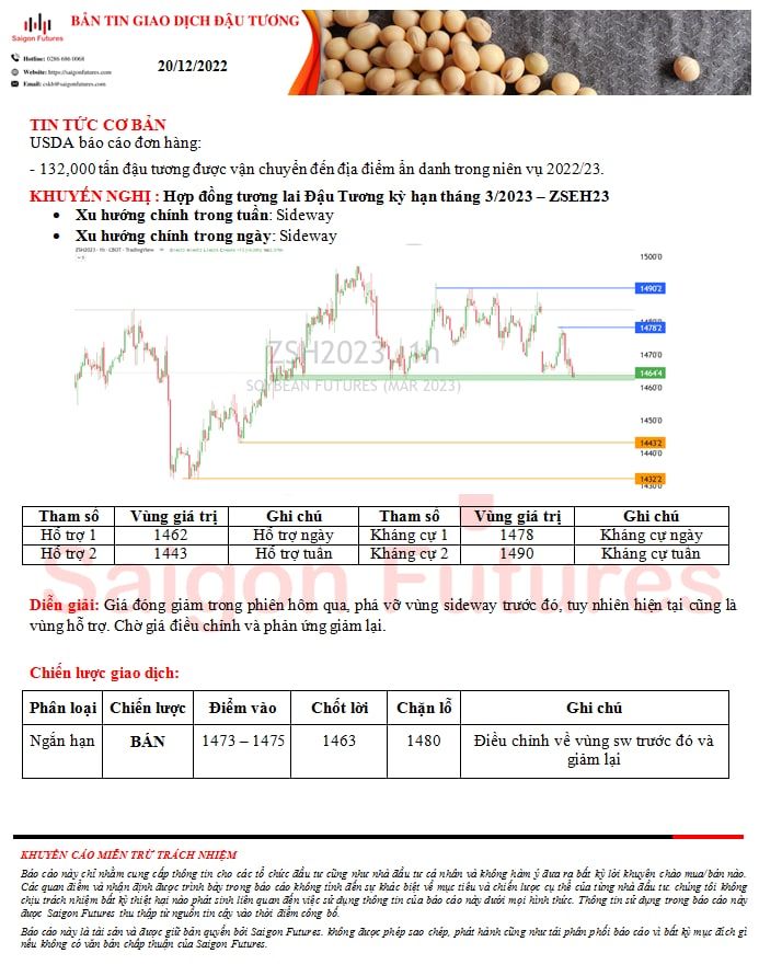 -View kỹ thuật Đậu Tương kỳ hạn tháng 3/2023 (ZSEH23) đầu ngày 20/12/2022