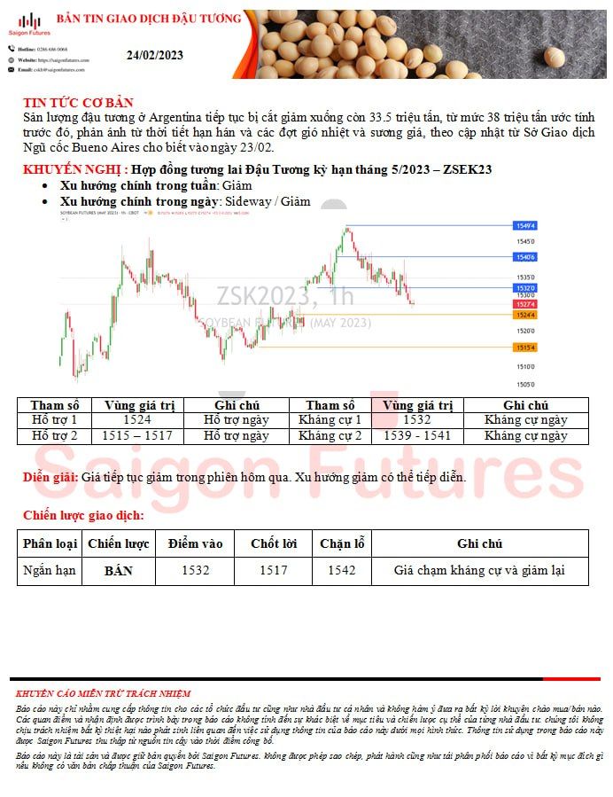 -View kỹ thuật Đậu Tương kỳ hạn tháng 3/2023 (ZSEH23) đầu ngày 24/02/2023