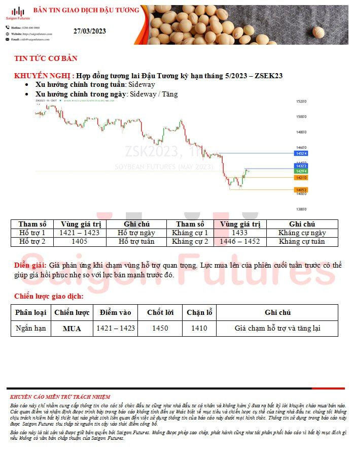 -View kỹ thuật Đậu Tương kỳ hạn tháng 5/2023 (ZSEK23) đầu ngày 27/03/2023