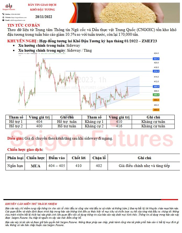 -View kỹ thuật Khô Đậu Tương kỳ hạn tháng 01/2022 (ZMEF23) đầu ngày 28/11/2022