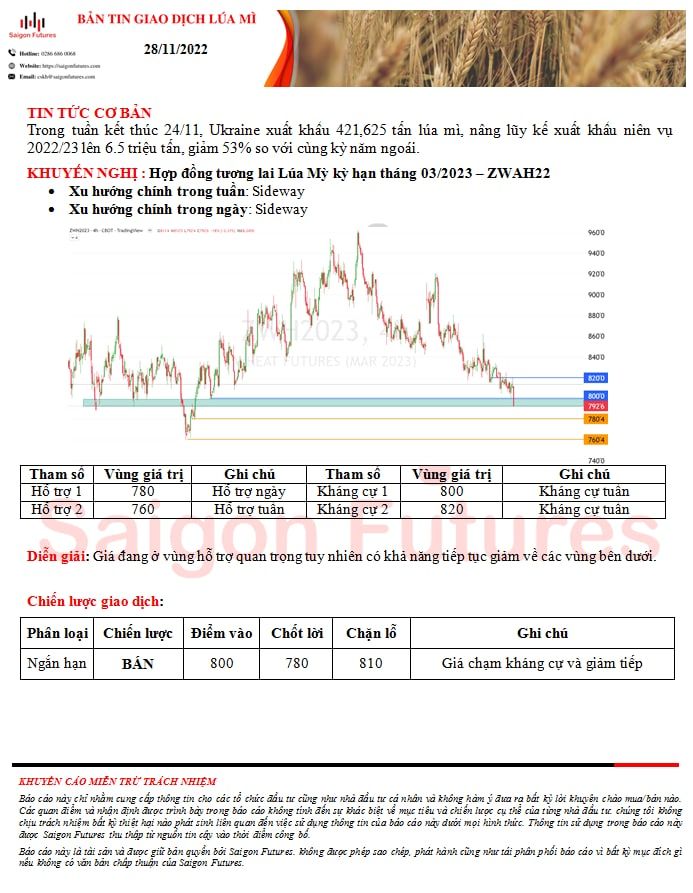 -View kỹ thuật Lúa mỳ kỳ hạn tháng 03/2022 (ZWAH23) ngày 28/11/2022