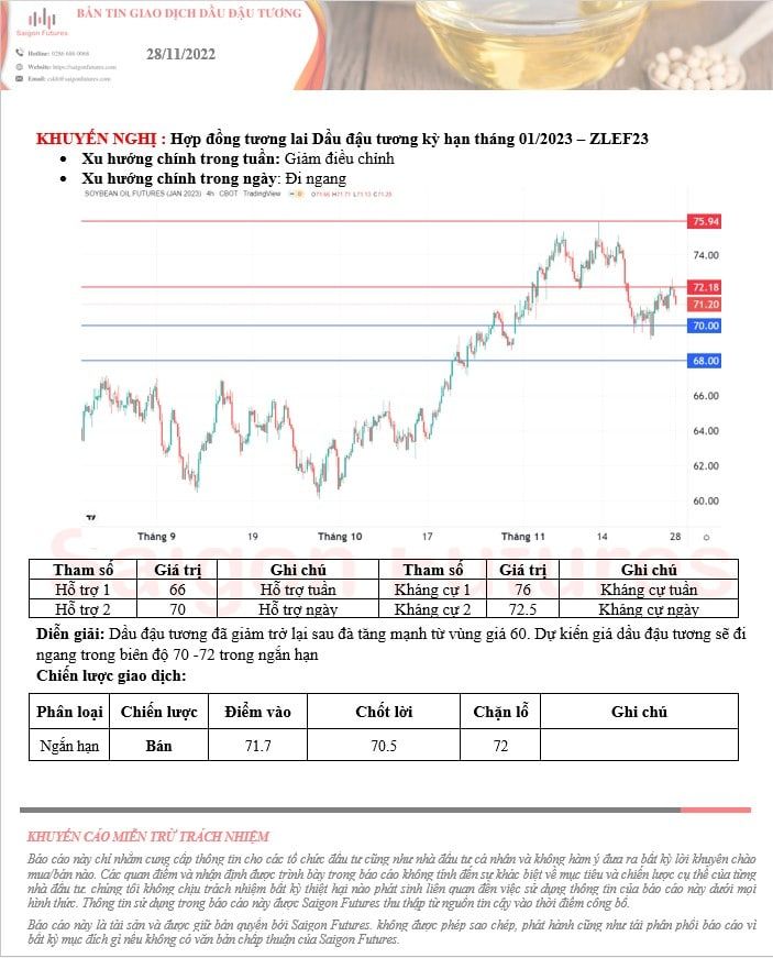 -View kỹ thuật Dầu Đậu Tương kỳ hạn tháng 01/2023 (ZLEF23) đầu ngày 28/11/2022