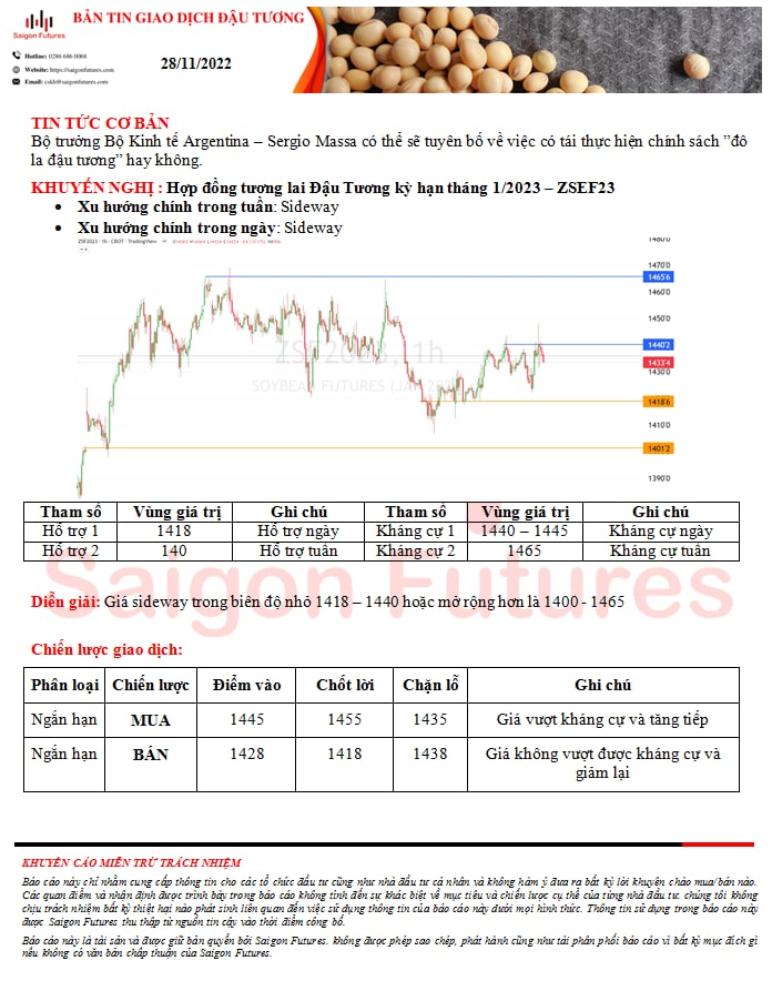 -View kỹ thuật Đậu Tương kỳ hạn tháng 1/2023 (ZSEF23) đầu ngày 28/11/2022