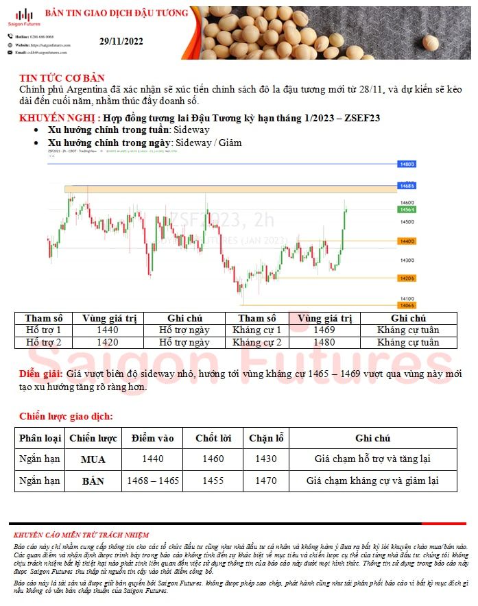 -View kỹ thuật Đậu Tương kỳ hạn tháng 1/2023 (ZSEF23) đầu ngày 29/11/2022